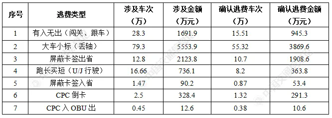分析可得,有入無出(闖關(guān)、跟車)、大車小標(biāo)(丟軸)、屏蔽卡簽出省和跑長買短(U/J行駛)等4種逃費(fèi)類型分別占據(jù)涉及行程數(shù)的96.87%、疑似損失金額的95.9%,是稽核系統(tǒng)需加大核查力度的逃費(fèi)類型,特別是屏蔽卡簽逃費(fèi)車次占為11%,逃費(fèi)金額占比卻達(dá)25%,以全網(wǎng)聯(lián)網(wǎng)收費(fèi)運(yùn)行模式下出現(xiàn)的新型逃費(fèi)類型,需要從技術(shù)、管理等多方面加強(qiáng)管理。有入無出(闖關(guān)、跟車)和跑長買短(U/J行駛)2類逃費(fèi)類型確認(rèn)逃費(fèi)金額占比有所下降,直接原因是稽核模型準(zhǔn)確率不高。下一步應(yīng)持續(xù)優(yōu)化迭代這2類模型,盡可能提高其準(zhǔn)確率,從而不斷提高可追繳比例。
